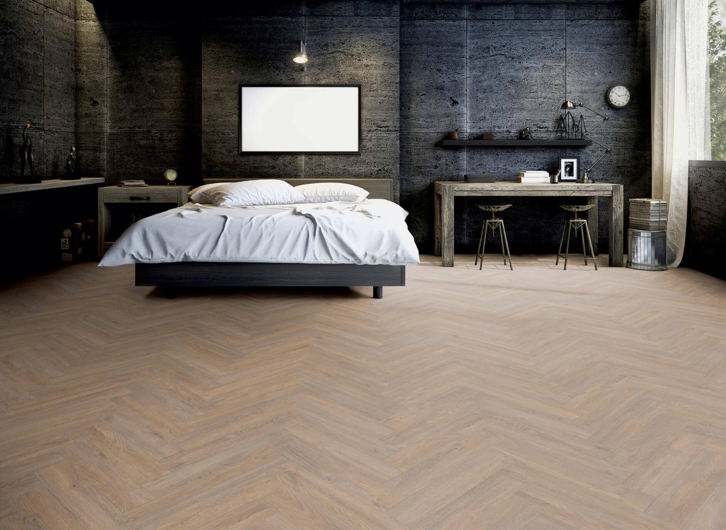 Ter Hurne Herringbone - это девять декоров в классическом формате 665x133x10 мм. Оттенки дуба в сочетании с укладкой «елочка» выглядят элегатно и стильно.