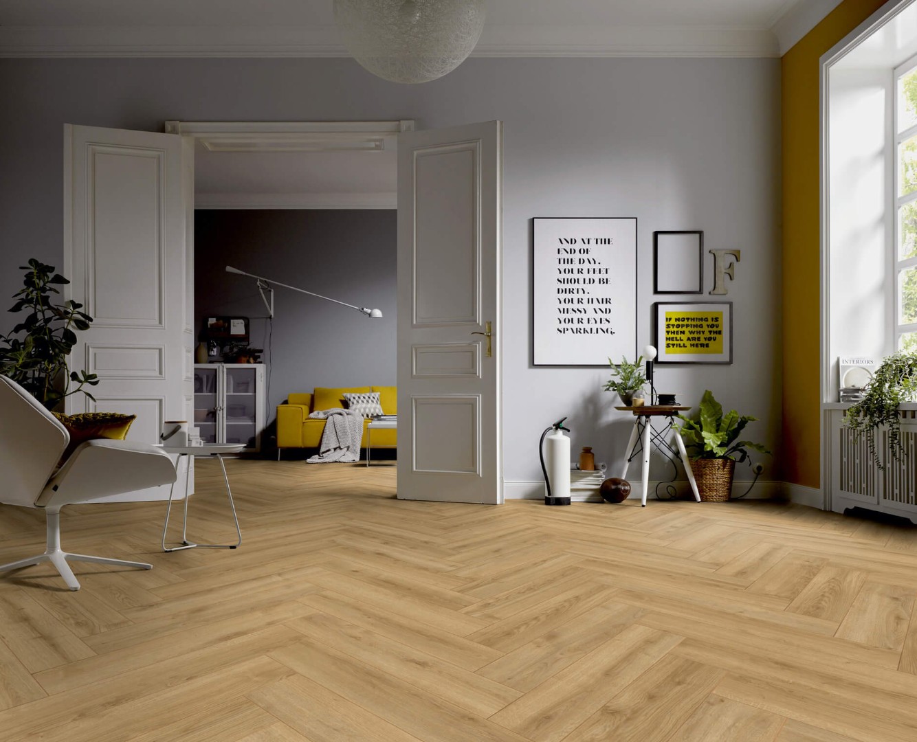 Ter Hurne Herringbone - это девять декоров в классическом формате 665x133x10 мм. Оттенки дуба в сочетании с укладкой «елочка» выглядят элегатно и стильно.